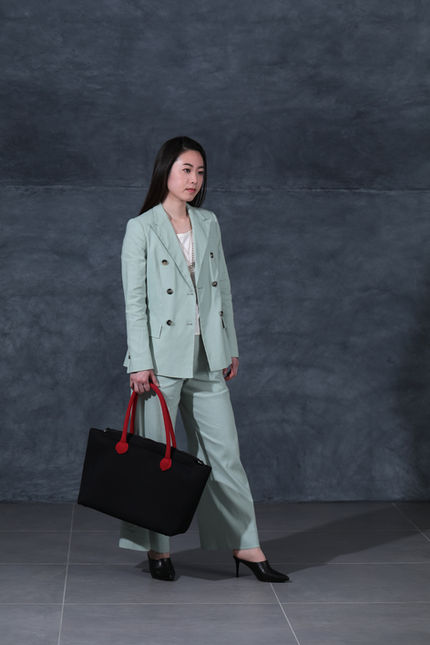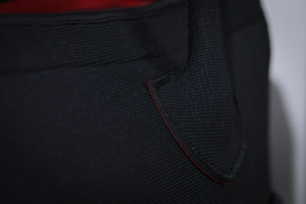 上品な雰囲気を出すため強度ある生地を仕様。カジュアルなデザインが多いネオプレーンとは異なる印象に。また出張や旅行をより快適に過ごしていただけるようスーツケースの持ち手は固定できる仕様。